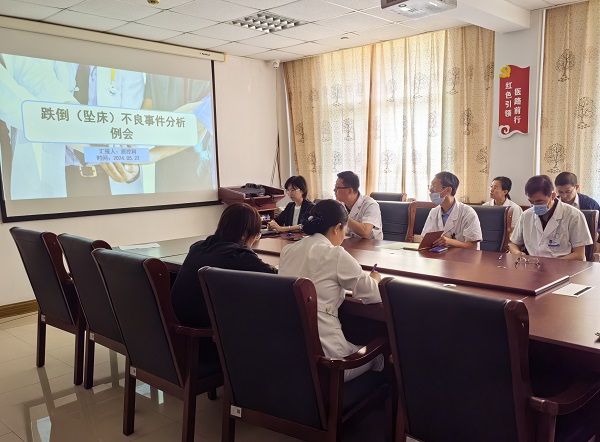 首先,質(zhì)控科孟麗對2022年度至2024年1-4月份跌倒、墜床事件發(fā)生總體情況進行闡述,并利用質(zhì)量管理工具就此類事件的年齡層占比、科室分布、發(fā)生時間占比、發(fā)生活動、傷害級別等相關(guān)信息進行了數(shù)據(jù)分析。隨后,針對本年度新發(fā)事件及重度事件進行討論分析,并針對該不良事件剖析原因,提出切實可行的安全防范措施。劉延科針對此類事件的分級定性、發(fā)生原因和整改措施進行分類總結(jié),從設(shè)施設(shè)備,保潔管理,健康教育等多角度,提出實施集束化護理策略、強化多部門配合機制、建立醫(yī)護人員知信行模式等整改措施,強調(diào)科室落實預(yù)防跌倒標準化流程。
