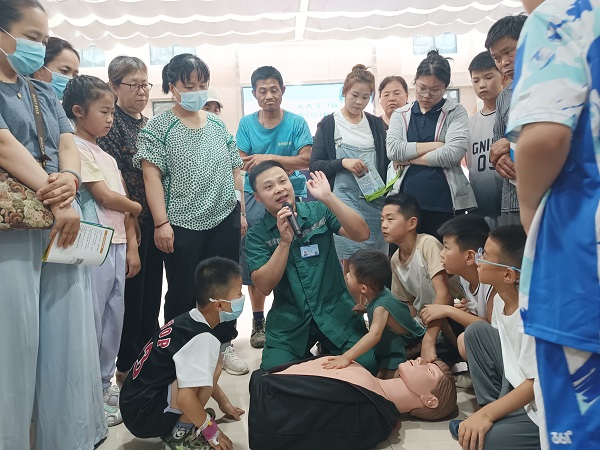 “今天我們學的是成人徒手心肺復蘇術,首先要判斷患者的情況是不是需要……”7月9日下午4時許,聊城市婦幼保健院一樓門診大廳,急診科醫(yī)師鄭亮亮正在講授成人徒手心肺復蘇術的操作要領,40余名市民圍著他,認真聆聽。