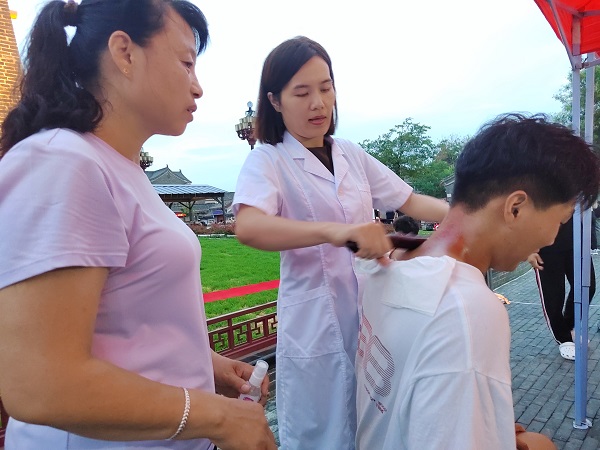 中醫(yī)科醫(yī)師黃國棟等人認(rèn)真傾聽每一位患者的訴求,仔細(xì)地為其進(jìn)行身體檢查,并為患者現(xiàn)場推拿按摩。護(hù)士李賽為前來體驗的群眾進(jìn)行刮痧服務(wù)……一時間,針灸、推拿、耳穴壓豆、刮痧等中醫(yī)操作成為了夜市攤位上最搶手的項目,來往的群眾都紛紛前來體驗。“現(xiàn)在醫(yī)院服務(wù)越來越貼心,出來逛街還能享受到醫(yī)療服務(wù),讓我們感到安心、暖心!”現(xiàn)場居民紛紛稱贊。