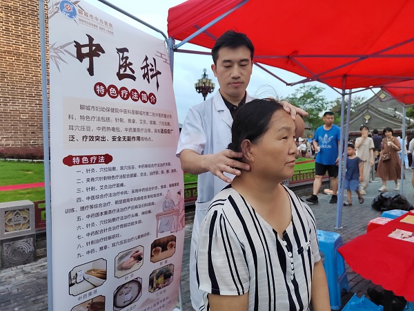 看名醫(yī)、做理療、享刮痧、針灸、耳穴壓豆……一站式進(jìn)行中醫(yī)藥文化體驗。夜幕初臨,,光岳樓廣場正是人群穿梭、來往如織的時刻,聊城市婦幼保健院“中醫(yī)藥健康夜市”吸引不少市民朋友前來打卡。