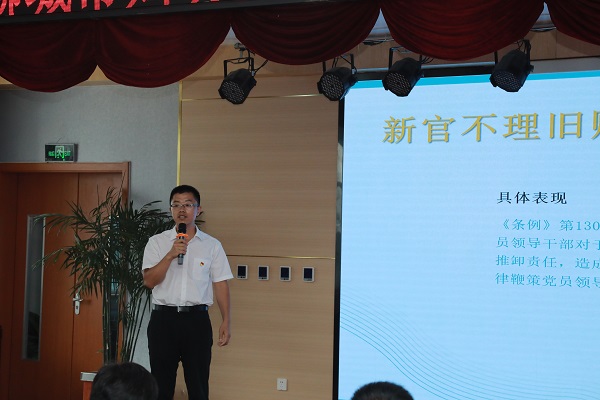 宣講服務(wù)隊(duì)系市紀(jì)委監(jiān)委派駐第四紀(jì)檢監(jiān)察組精選精干力量組成。宣講員分別以政治紀(jì)律、工作紀(jì)律、群眾紀(jì)律和生活紀(jì)律為主題,以《中國(guó)共產(chǎn)黨紀(jì)律處分條例》修訂的部分為重點(diǎn),對(duì)違法違紀(jì)案例的典型情形和突出問(wèn)題進(jìn)行了剖析,通過(guò)反面典型警示案例以案釋法、以案明紀(jì),對(duì)黨員干部全面學(xué)習(xí)、全面把握《條例》,具有重要的指導(dǎo)作用。