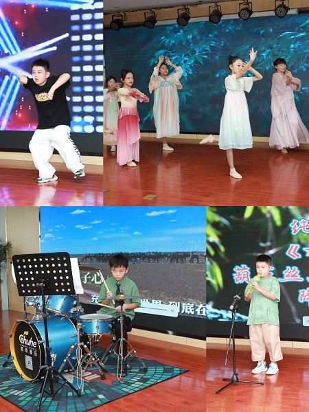 講話結(jié)束后,活力四射的開場舞《快樂崇拜》正式拉開了結(jié)業(yè)演出的序幕。旋律優(yōu)美飄逸的葫蘆絲獨奏、慷慨激昂的朗誦、色彩斑斕的繪畫、活力十足的街舞等表演讓大家目不暇接,回味無窮!小朋友們活力四射,用自己的“獨門絕技”給大家?guī)砹艘粓鲆暵犑⒀,充分展現(xiàn)了他們多才多藝、朝氣蓬勃的精神面貌。活動現(xiàn)場氣氛熱烈,掌聲雷動;顒幼詈螅钔邪嗟睦蠋焸?yōu)樾∨笥褌冾C發(fā)了榮譽證書。