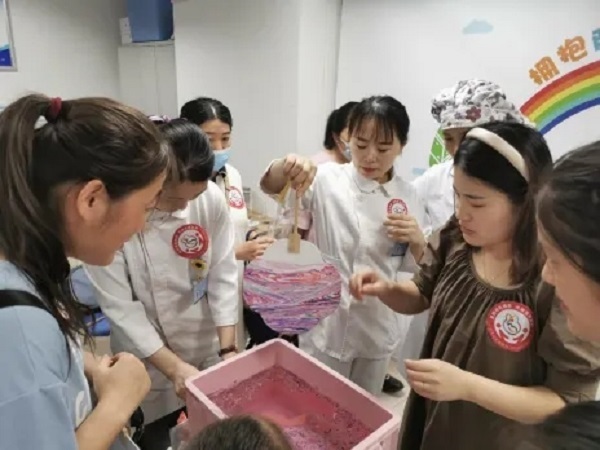 公益講座結束后,聊城市婦幼保健院孕婦學校的老師們帶著孕媽們開展了“非遺漆扇”手工活動。孕媽們自主選擇喜歡的顏色并動手體驗漆扇的制作過程,以漆為筆,以水作畫,每一把漆扇都是獨一無二的,直觀感受到中國傳統(tǒng)工藝的獨特魅力。