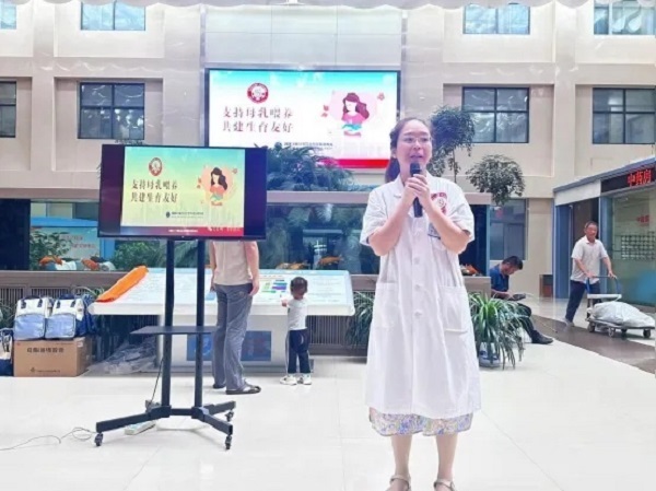 活動中,通過設立咨詢臺、懸掛橫幅、發(fā)放母乳喂養(yǎng)指導宣傳折頁等形式進行宣傳,產科醫(yī)務人員向咨詢者耐心講解母乳喂養(yǎng)的相關知識并發(fā)放《母乳喂養(yǎng)的好處》等宣傳折頁,同時呼吁全社會都來關注和支持“母乳喂養(yǎng)”的觀念,讓母親和寶寶建立更緊密的關系。