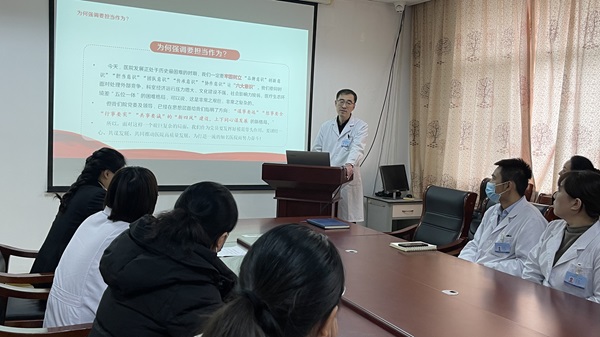 活動伊始,醫(yī)院團(tuán)委邀請優(yōu)秀黨員代表心內(nèi)科主任潘棟做了《敢擔(dān)當(dāng) 有作為》的授課,他通過PPT從“何為擔(dān)當(dāng)作為?”、“為何強(qiáng)調(diào)要擔(dān)當(dāng)作為?”“新時(shí)期黨員如何擔(dān)當(dāng)作為?”三大方面,結(jié)合個(gè)人學(xué)習(xí)所思、所想、所悟,講解了廣大青年團(tuán)員要自覺加滿油、把穩(wěn)舵、鼓足勁,以高度的責(zé)任感和使命感,積極投身到醫(yī)院的發(fā)展上去。