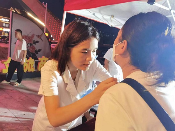 7月26日 聊城市婦幼保健院中醫(yī)專家團隊在高新區(qū)月季里廣場開展中醫(yī)文化夜市,讓市民體驗中醫(yī)藥文化。