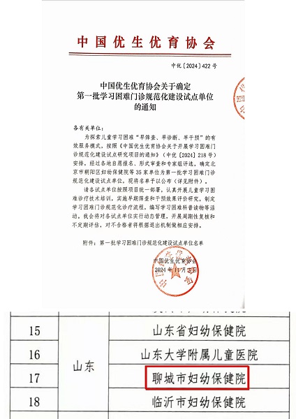 11月3日 聊城市婦幼保健院被確定為全國第一批學(xué)習(xí)困難門診規(guī)范化建設(shè)試點單位。
