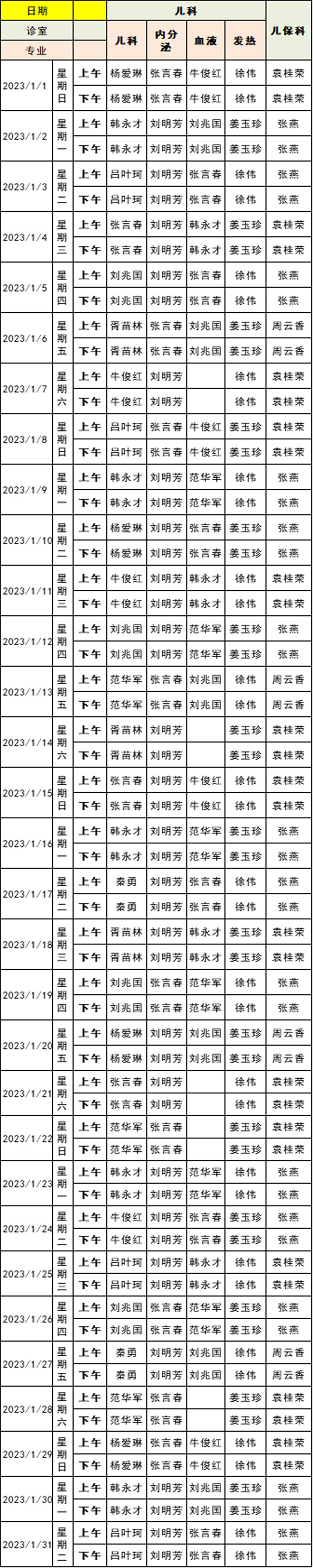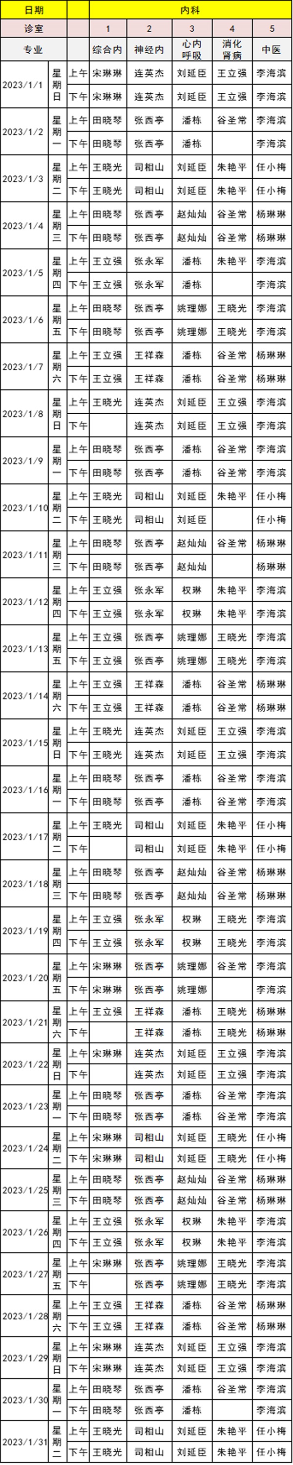內(nèi)科系統(tǒng) 專(zhuān)家排班表