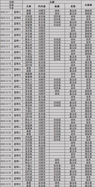 兒科系統(tǒng) 專家排班表