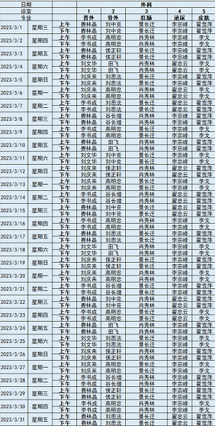 外科系統(tǒng) 專家排班表