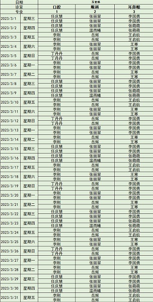 五官科系統(tǒng) 專家排班表