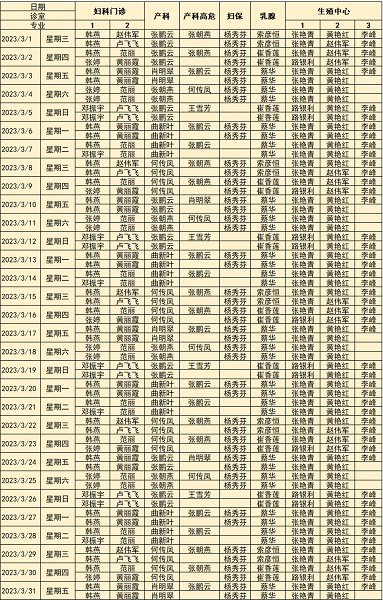婦科系統(tǒng) 專家排班表