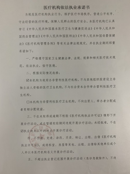 醫(yī)療機(jī)構(gòu)依法執(zhí)業(yè)承諾書(shū)